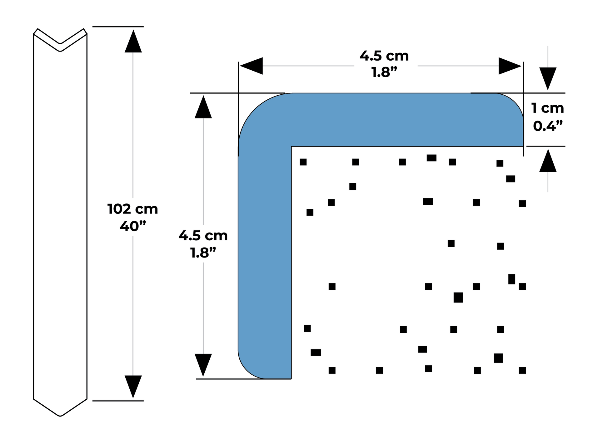 102 cm x 4.5 cm x 4.5 cm x 1 cm thick
